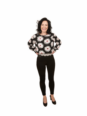 Elinette kukkapaitis arkeen ja juhlaan; mustalla pohjalla päivänkakkaramaisia kukkia.